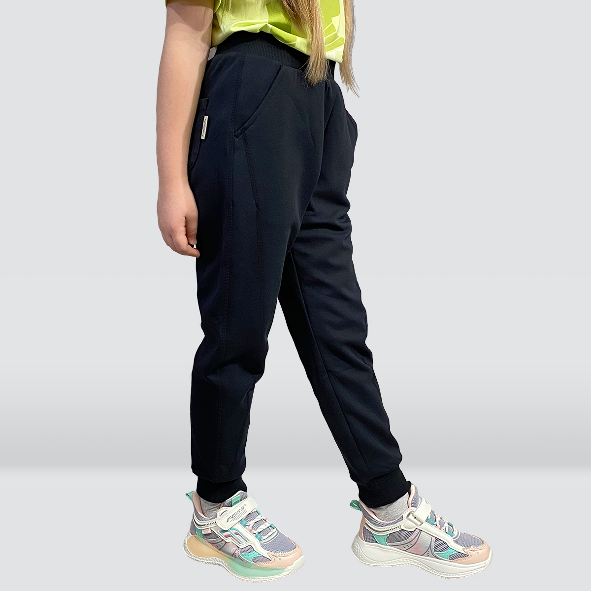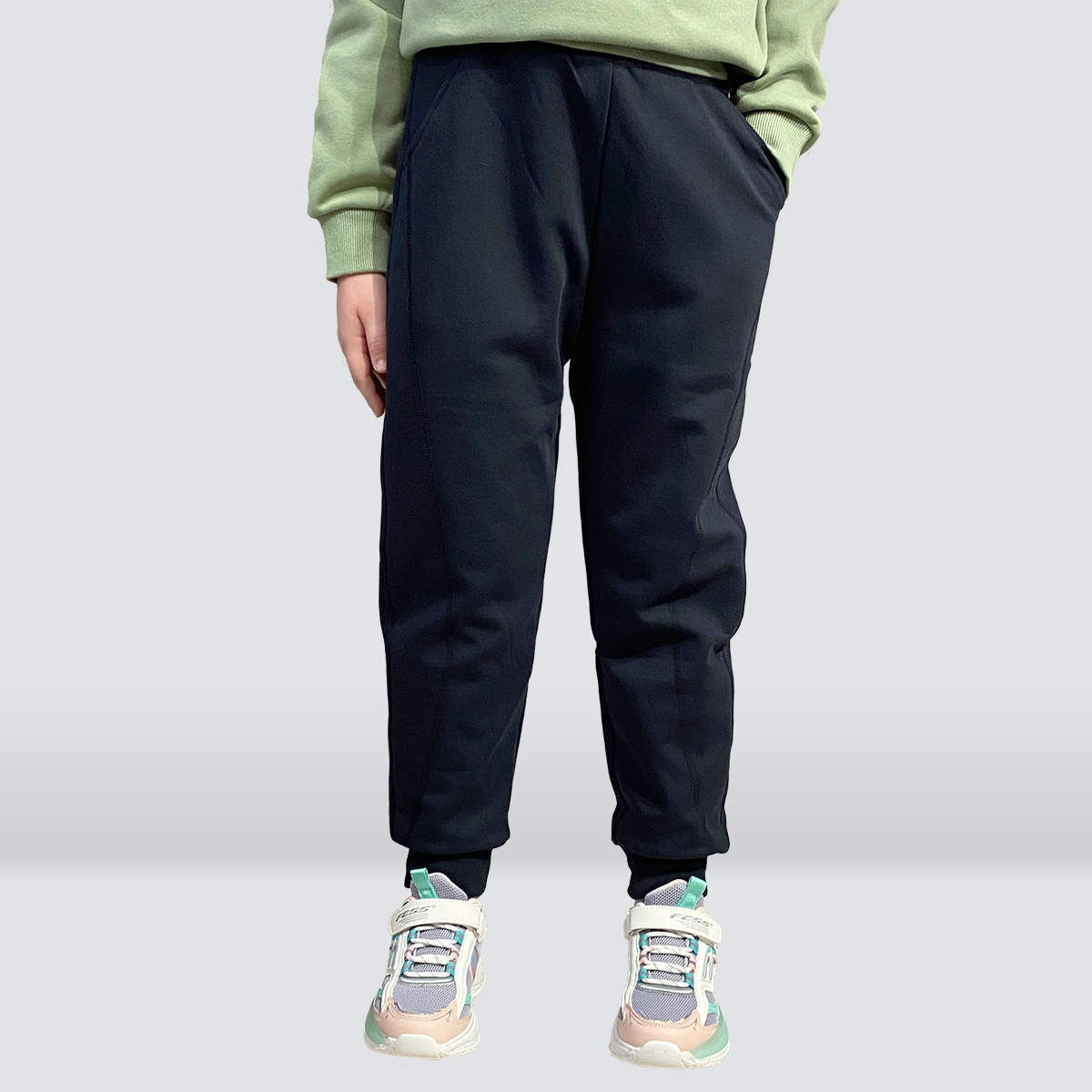 Тёплые повседневные брюки на манжете внизу и мягкой широкой трикотажной резинкой на талии, гладкие и приятные наощупь снаружи, на хлопковой подкладке.